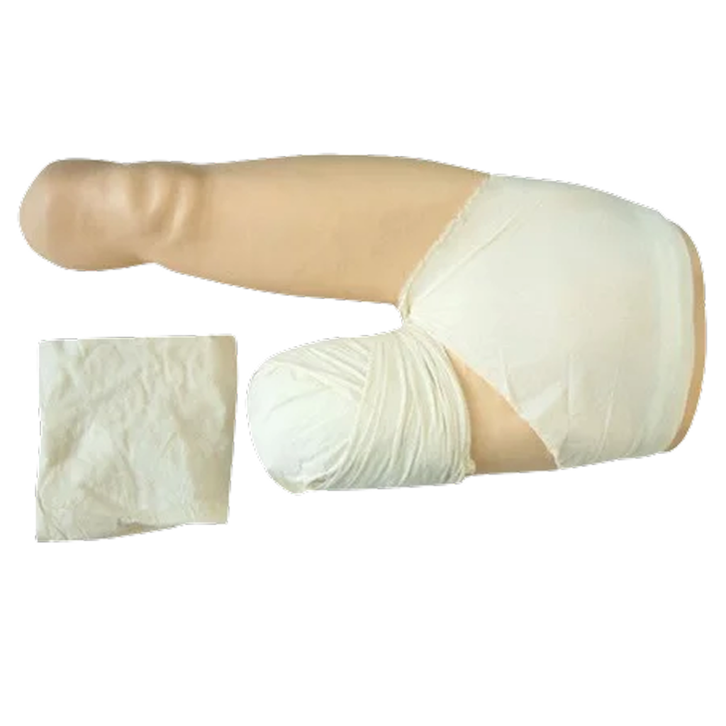 Additionally, it helps students learn the correct way to secure and fix bandage ends, ensuring proper dressing stability and patient comfort.